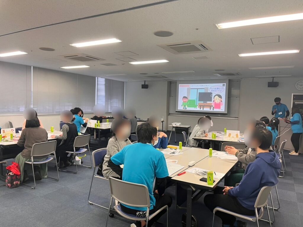 当日は、ABA理論に基づくご家庭での褒め方をロールプレイ形式で練習。その後は教室を超えての座談会を行いました。「ゲームがやめられない、兄弟げんかが絶えない、一般級か通級か? 通級か特別支援級か?悩む」など日常から将来に繋がる内容まで、ざっくばらんに話すことができました。