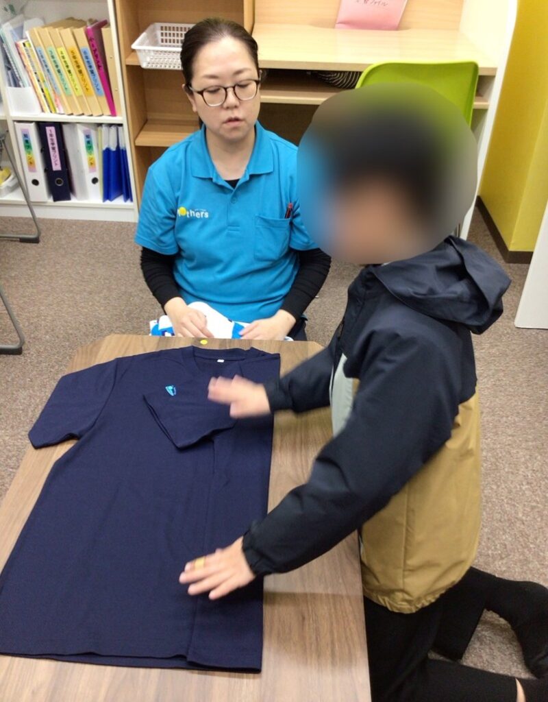 「自分の物を片付けられるようになって欲しい」というニーズに対し、「どうして片付けないといけないのか」を本人と一緒に考えます。次に「どうやって片付けるか」について、机の上を片付ける、おもちゃを片付ける、衣類を片付けるなど場面や場所を想定して実際に片付ける練習を行っています。